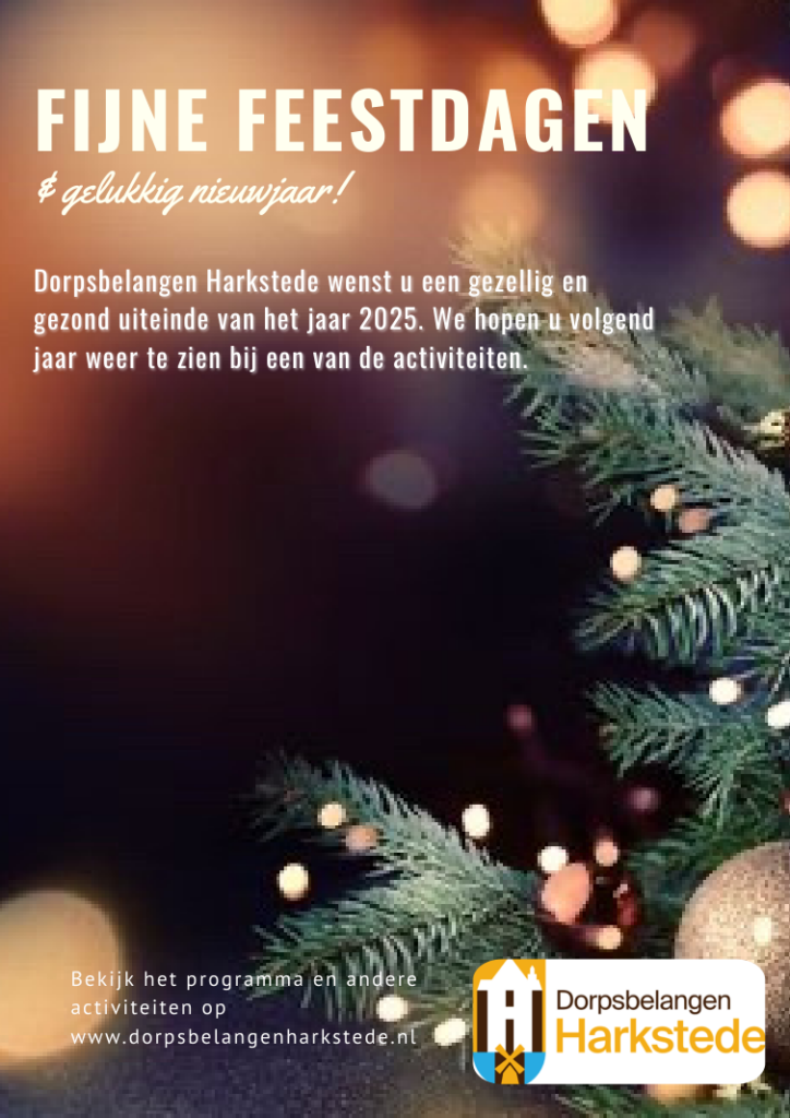 Dorpsbelangen wenst alle inwoners van Harkstede een gezellig en gezond uiteinde van het jaar 2025. Wij hopen jullie volgend jaar weer te zien bij een van de activiteiten.